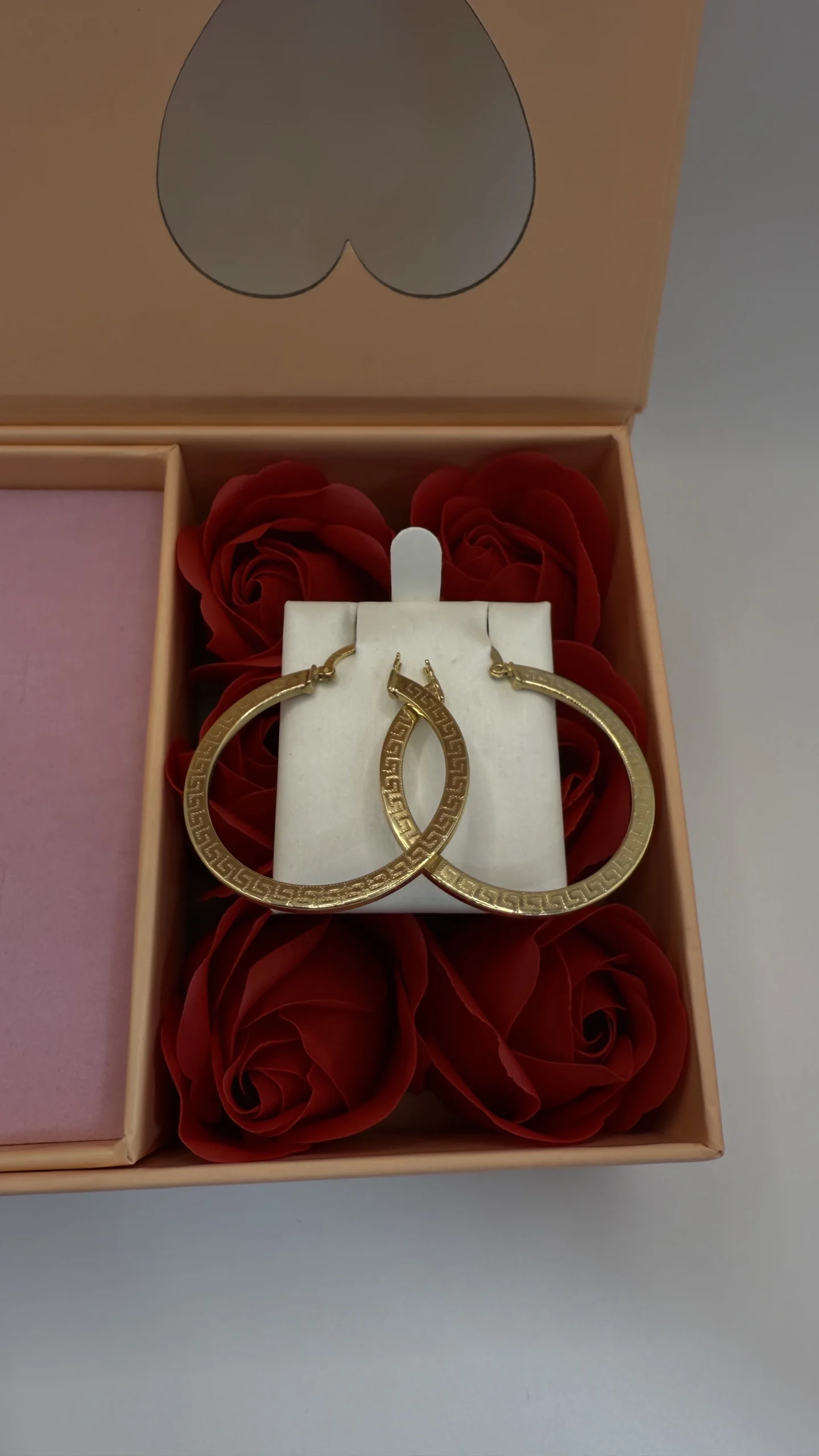 Timeless elegance meets cultural charm in these 14K Real Gold Greek Key Hoop Earrings. Crafted from genuine 14-karat gold, each hoop showcases the iconic Greek key pattern for a refined and sophisticated look. Perfect for both everyday wear and special occasions, these lightweight yet durable earrings come beautifully packaged in a rose-accent gift box — ready to impress.